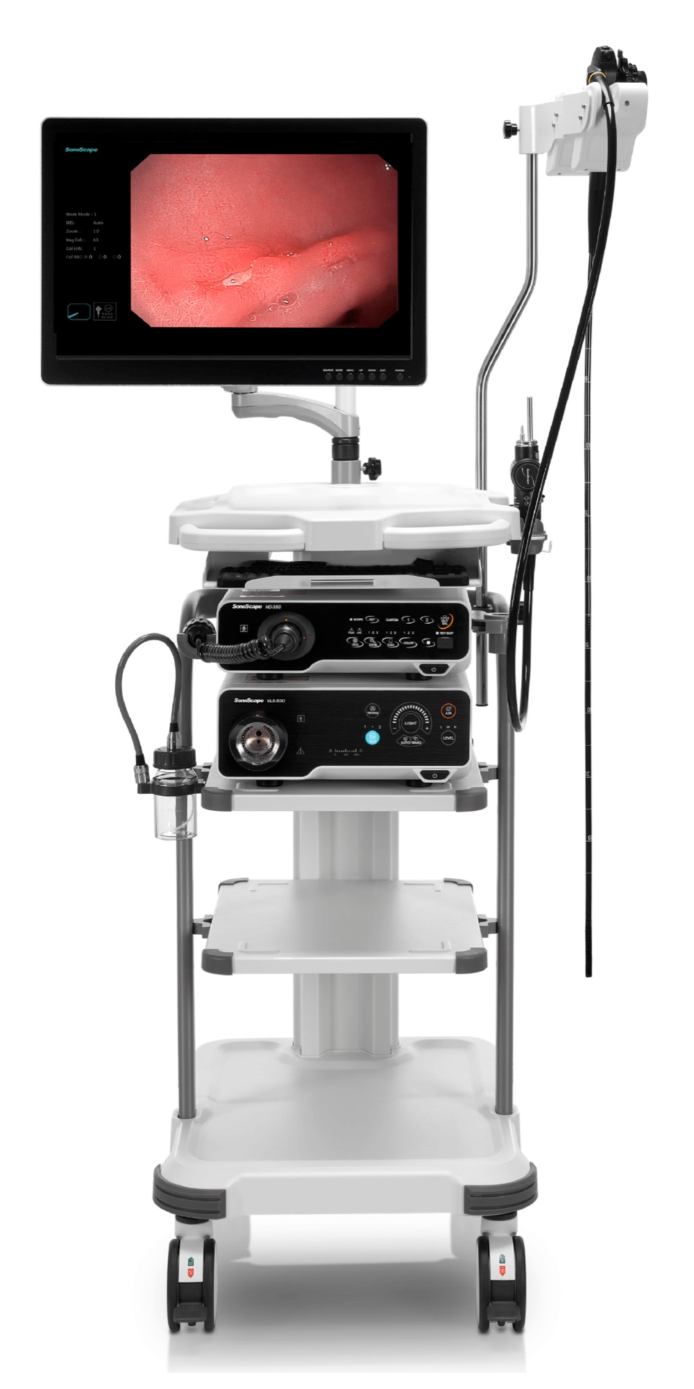 利用了血红蛋白在不同波长吸收下系数不同的原理,设计的一种光学域滤波和数字域滤波结合的染色技术,既保证了图像亮度,又可增强黏膜血管的对比度,充分凸显早期病变的细微结构变化,为临床疾病的观察诊断提供更丰富的参考信息。